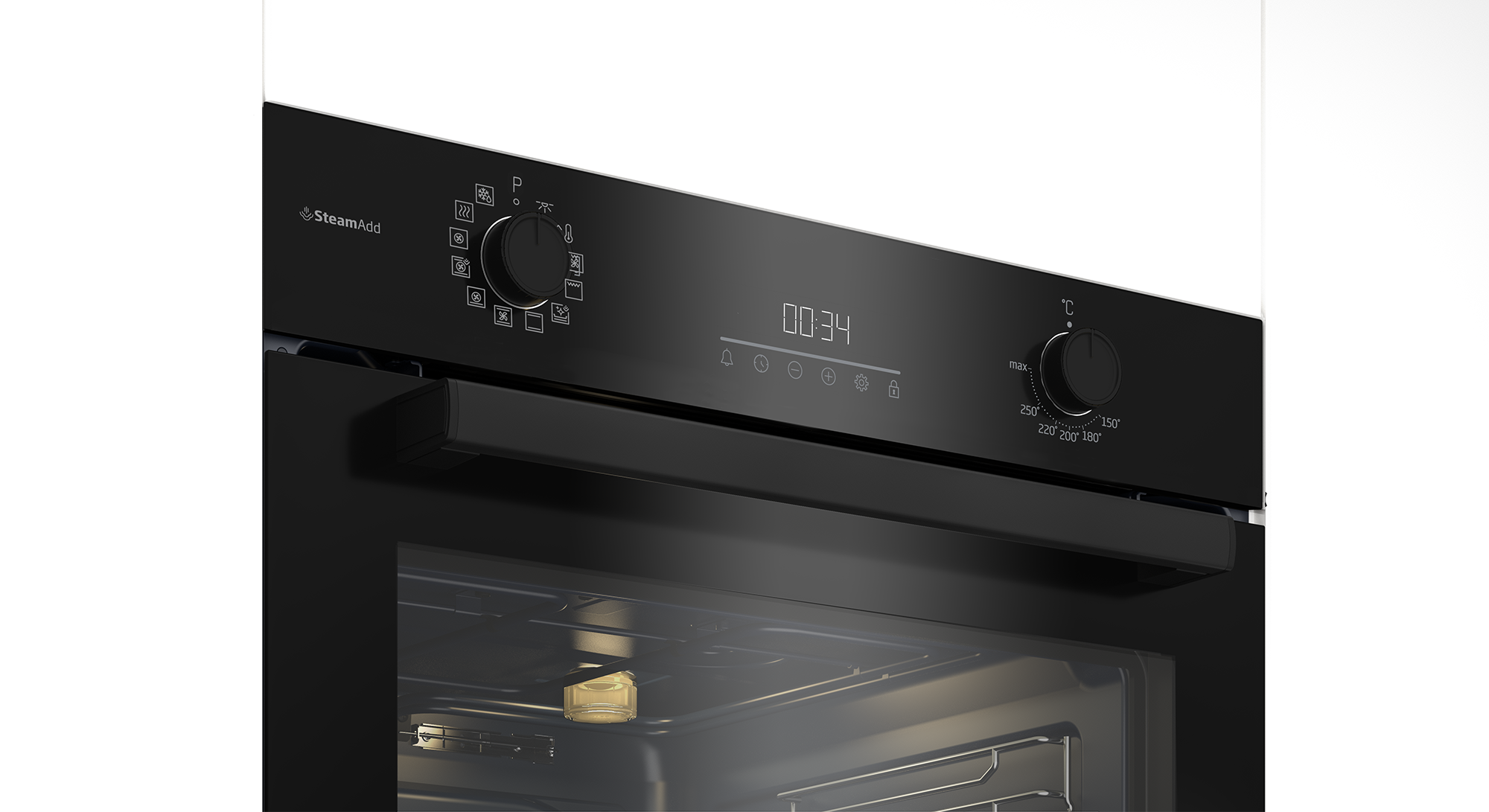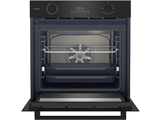 Der BEKO BBIS17300BCS verbindet vielseitige Funktionen mit zeitgemässem Design in klassischer Einbauhöhe von 59,5 cm. Mit einem Garraum von 72 Litern lässt sich ein großer Backund Bratumfang realisieren. Insgesamt stehen 12 Heiz- und Kombinationsarten zur Verfügung — darunter Ober-/Unterhitze, Heißluft, Umluftgrill, Pizza-Stufe, Auftauen, Warmhalten und Booster/Schnellaufheizung. Das Gerät ist mit einem LED-Touch-Display ausgestattet und verfügt über versenkbare Bedienknebel für eine glatte Front. Komfortmerkmale wie die SoftClose®-Tür, ein 1-fach Teleskopauszug zur sicheren Entnahme von Blechen sowie eine katalytische Rückwand zur erleichterten Reinigung machen das Gerät alltagstauglich. Technisch arbeitet das Gerät mit einem Anschlusswert von ca. 3,3 kW im 230 V-Netz und erreicht die Energieeffizienzklasse A im konventionellen Betrieb. Die schwarzen Front und das moderne Design fügen sich dezent in viele Küchenumgebungen ein. Dieses Modell eignet sich besonders für Haushalte mit gehobenem Anspruch an Funktionalität und Komfort.