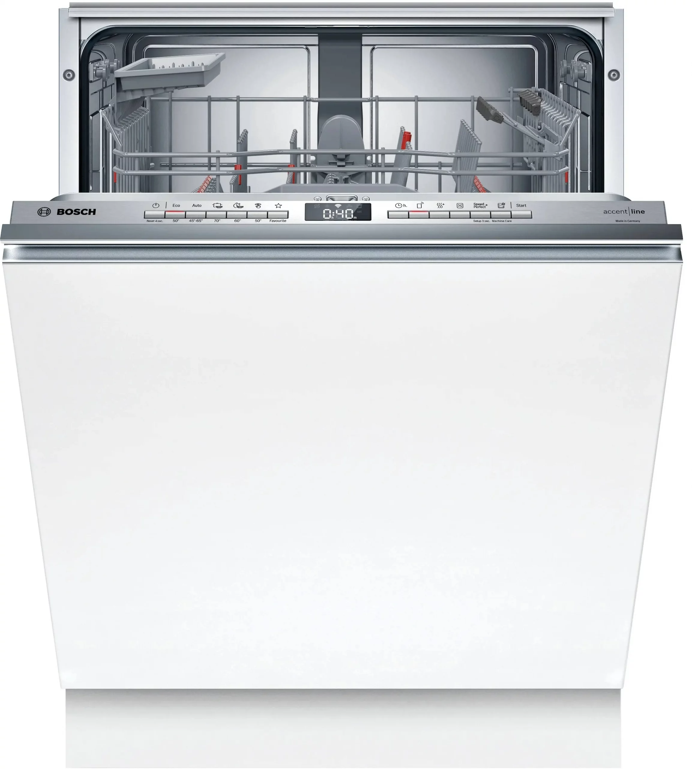 Der Bosch SMD4EB805E vereint modernes Design, hohe Effizienz und intelligente Steuerung in einem vollintegrierbaren Geschirrspüler. Mit Platz für 13 Maßgedecke bietet er ausreichend Raum für Familien oder Haushalte mit regelmäßigem Spülbedarf. Dank seines niedrigen Wasserverbrauchs von etwa 9 Litern im Eco-Programm und der Energieeffizienzklasse A++ arbeitet er besonders sparsam.