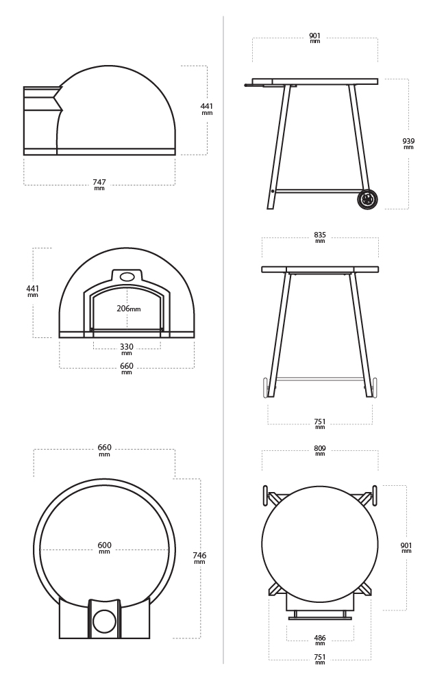 Der FIRST 60 hat einen Backboden mit 60 cm Durchmesser. Das feuerfeste Material, das in der Kuppel und im Tablett verwendet wird, erwärmt sich schnell und ermöglicht es Ihnen, Lebensmittel durch geringes Abkühlen länger zuzubereiten. Die Grundplatte benötigt keine spezielle Reinigung. Öl oder auf dem Boden verschüttete Speisereste werden aufgrund der hohen Temperatur bis zur nächsten Nutzung verbrannt. Aufgrund der Temperatur von bis zu 500 ° C bleibt der Geruch der zuvor zubereiteten Mahlzeiten nicht im Ofen.